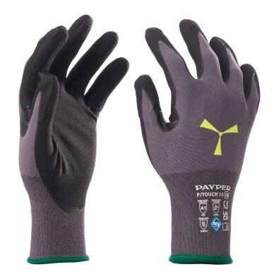 Rękawica z nylonu-elastanu 15g, dzianinowy mankiet, nitrylowe wzmocnienie między kciukiem a palcem wskazującym oraz powłoka z mikropianki nitrylowej na wewnętrznej stronie dłoni, aby zapewnić doskonałą przyczepność.