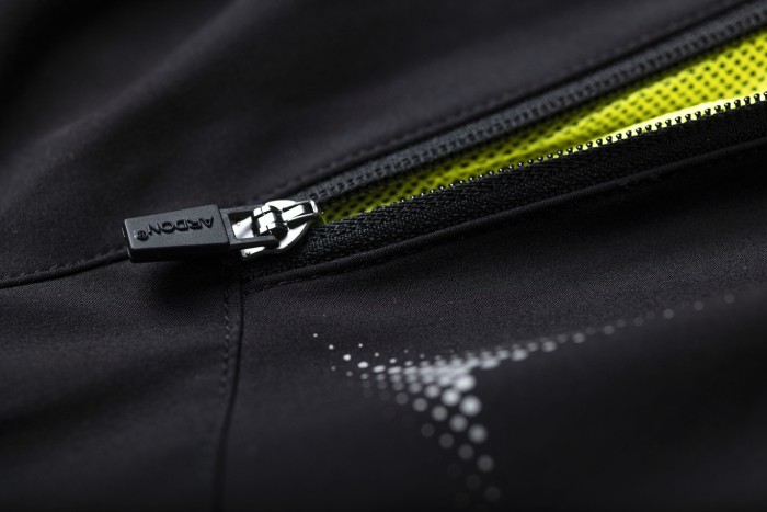 dół nogawek z regulacją obwodu na zatrzaski, wewnętrzny haczyk z gumą do podpięcia nogawek do obuwia