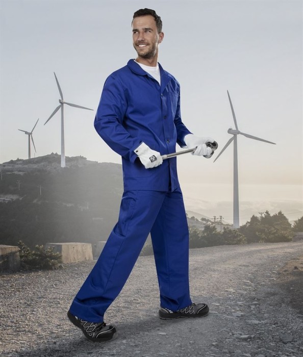 Zestaw roboczy ze 100% bawełny. Bluza robocza z kołnierzykiem, zapinanie na guziki, naszywane kieszenie. Wariant H5007 bluza robocza i spodnie do pasa, ściąganie spodni w pasie na sznurek. Wariant H5009 spodnie do pasa + bluza robocza, wydłużona. Wariant H5016 bluza robocza i ogrodniczki, kieszeń na suwak na piersiach.