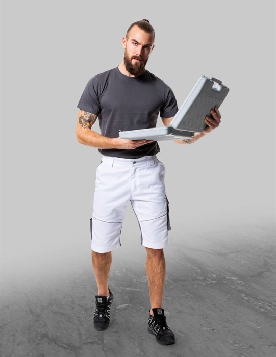 Uniwersalne szorty robocze SAMMER/ARDON spełniają normy EN 13688 (odzież ochronna, wymagania ogólne). Spodenki robocze o prostej konstrukcji, chronią przed minimalnym ryzykiem. Występują w wariantach kolorystycznych: szary, niebieski, ciemnoszary, biały i khaki. Rozmiar: 46-64. Wykonane z wytrzymałego materiału: 65% poliester/ 35% bawełna, 200 g/m2. Odzież z mieszanki poliestrowo-bawełnianej jest przeznaczona do określonych celów, przewaga poliestru wzmacnia tkaninę a w ubraniach roboczych to połączenie sprawdza się niezawodnie. Trwałość i odporność na uszkodzenia w połączeniu z miękkością bawełny sprawiają, że odzież jest bardzo komfortowa w noszeniu. Spodenki wyposażono w praktyczne kieszenie z przodu, w tylnej części i wielofunkcyjne kieszenie miechowe na narzędzia po bokach nogawek, w tym kieszeń na komórkę o rozmiarze do 5,6“, szerokie szlufki na pasek, elementy odblaskowe, wygodne zapięcie na suwak i guzik, dopasowanie dzięki gumie w pasie. Szorty robocze idealnie sprawdzają się w okresie wiosenno-letnim podczas sprzyjającej pogody i przy zajęciach, które nie wymagają kompletnego osłonięcia użytkownika. Chętnie korzystają z nich monterzy, budowlańcy, magazynierzy, pracownicy hal montażowych i produkcyjnych, nawet pracownicy drogowi. Oczywiście przy zakupie krótkich spodni roboczych należy kierować się przede wszystkim poziomem bezpieczeństwa, jaki powinniśmy sobie zapewnić.