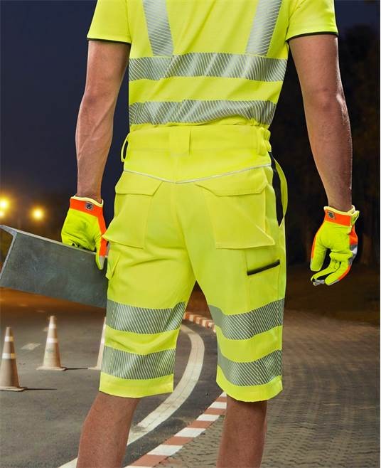 Spodenki SIGNAL/ ARDON spełniają normy EN 13688 (odzież ochronna, wymagania ogólne)/ EN 20471+A1 (odzież ostrzegawcza)/ Klasa 1. Klasa 2 w kombinacji: spodenki SIGNAL+koszulka z krótkim rękawem SIGNAL, Klasa 3 w kombinacji: spodenki SIGNAL+koszulka z długim rękawem SIGNAL+bluza robocza SIGNAL. Warianty kolorystyczne: fluorescencyjny żółto-pomarańczowy i żółto-czarny. Rozmiary 44-66. Spodenki wykonane z wytrzymałej mechanicznie tkaniny diagonalnej 65% poliester/ 35% bawełna, splot diagonalny/ 290 g/m2. Ergonomiczny szczupły fason do pasa. Spodenki bardzo komfortowe w noszeniu z elastyczną lamówką w pasie ze zintegrowaną gumą. Spodenki posiadają wielofunkcyjne kieszenie: dwie przednie kieszenie przelotowe, dwie w części tylnej kryte plisą, na lewej nogawce kieszeń kryta plisą, na prawej kieszeń na metrówkę, śrubokręt. Model wyposażony w dwa segmentowe paski odblaskowe w części przedniej i dwa w tylnej. Fluorescencyjny kolor, odblaskowe pasy, które zapewniają wysoki poziom widoczności, idealne dopasowanie do sylwetki użytkownika, duża gama rozmiarów i odporność na uszkodzenia powodują, że jest to najlepszy wybór i bardzo wygodna propozycja dla pracowników zewnętrznych w okresie letnim.