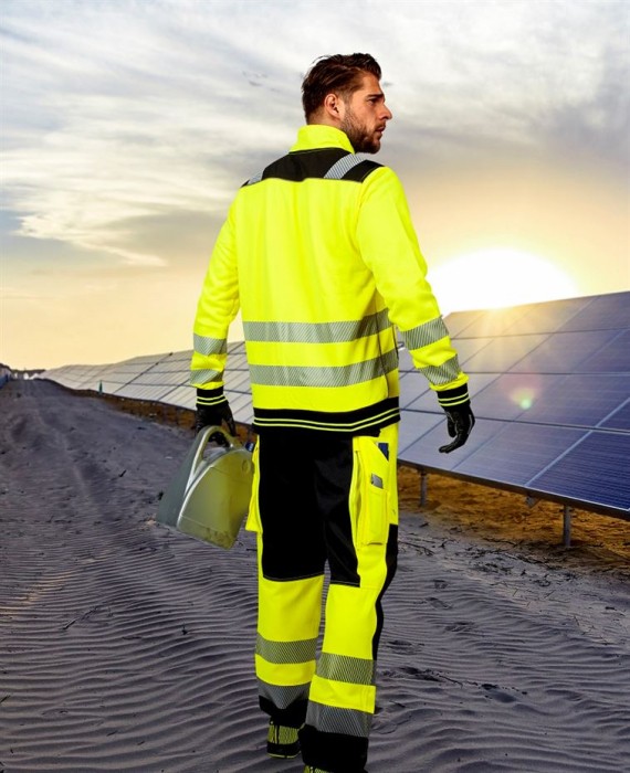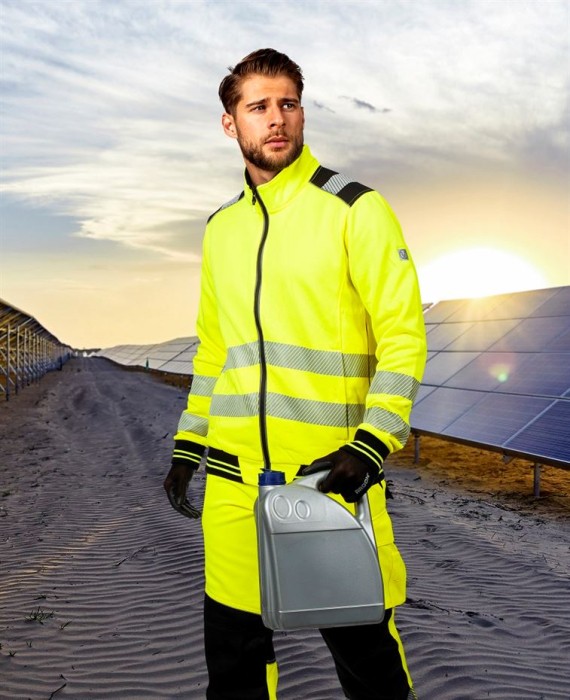 Ostrzegawcza bluza ze stójką spełnia parametry odzieży wysokiej widoczności ergonomiczny fason, zapinanie na suwak, wzmocniony karczek, szwy kształtujące w części przedniej, 2 kieszenie na suwak, elastyczne ściągacze na rękawach i dolnej lamówce bluzy, 2 ...