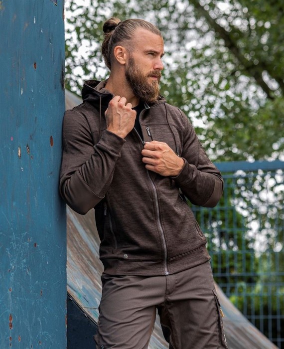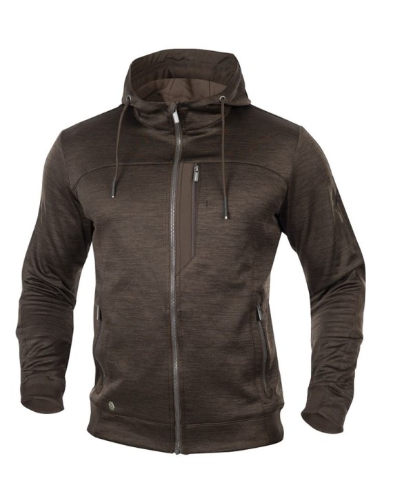 Bluza 3D BREATHE melange - brązowy/ ARDON spełnia normy EN 13688. Bardzo komfortowa, lekka i maksymalnie oddychająca bluza. Atrakcyjny design melange, kolor brązowy, rozmiary od S do 4XL. Wykorzystanie szybkoschnącego materiału ARDON 3D BREATHE (100% tkany poliester) zapewnia doskonałą izolację cieplną w połączeniu z oddychalnością. Części poddawane wysokiemu obciążeniu są wzmocnione funkcjonalną, wytrzymałą tkaniną stretchową ARDON BREEFFIDRY(95% poliester/ 5% spendex/ 320 g/m2), która jest elastyczna i oddychalna, łatwo transportuje pot na zewnątrz. Dopasowany fason SLIM FIT posiada anatomicznie formowane rękawy, główne zapięcie na suwak z osłoną brody, funkcjonalne kieszenie: w części piersiowej modna kieszeń na suwak i dwie kieszenie zapinane na suwak w części dolnej, kaptur z możliwością regulacji oraz rękawy i dolna lamówka zakończone ściągaczem. Atrakcyjny anatomiczny fason przyciąga wzrok i zadowala nawet najbardziej wymagających użytkowników. Bluza odpowiednia do trudnych warunków roboczych, aktywności sportowej i outdooru.