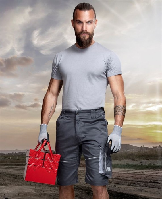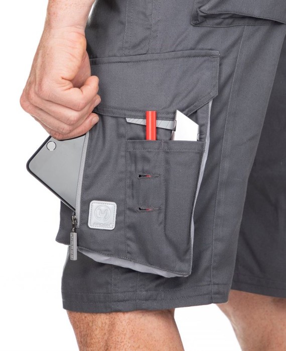 Wielofunkcyjna kieszeń na boku, kieszeń na komórkę o rozmiarze do 5,6“, wielofunkcyjna kieszeń na narzędzia, elementy odblaskowe. Materiał: 65 % poliester, 35 % bawełna, 200 g/m²