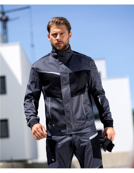 Bluza montażowa certyfikowana zgodnie z normami EN ISO 13688, EN ISO 1149-5 i EN 61340-5. Optymalna gramatura materiału zapewnia przewiewność, bluza jest idealnym wyborem do zamkniętych zakładów produkcyjnych i użytku na zewnątrz. Specjalne włókno zapewnia odzieży wysoką trwałość i wytrzymałość oraz właściwości antystatyczne, konstrukcja bez widocznych zamków błyskawicznych. Bluza jest wyposażona w 1 wewnętrzną kieszeń na piersi zapinaną na zamek, 2 boczne kieszenie zapinane na zamek, ma elastycznie zakończone mankiety i dół. Anatomiczny krój 3D COMFORT FIT. Odblaskowe lamówki z przodu i z tyłu bluzy zapewniają zwiększoną widoczność. Lewa górna część bluzy i lewy rękaw przeznaczone na umieszczenie firmowego logo. Odzież bez elementów metalowych, przeznaczona do prania przemysłowego. Niemetalowy D-ring na karabińczyk. Kompatybilny z ID card ARDON®REFIWAN®.