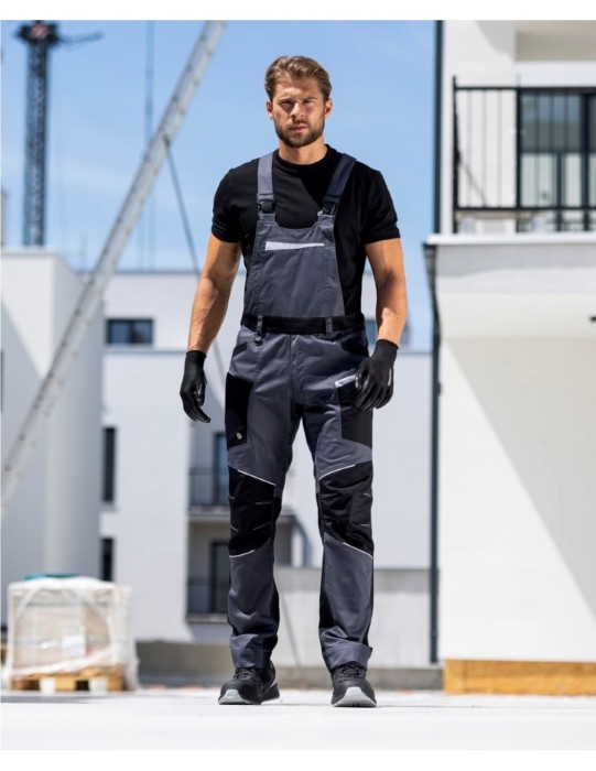 Ogrodniczki robocze certyfikowane zgodnie z normami EN ISO 13688, EN ISO 1149-5 i EN 61340. Optymalna gramatura zapewnia przewiewność, spodnie są idealnym wyborem do zamkniętych zakładów produkcyjnych i użytku na zewnątrz. Specjalne włókno zapewnia odzieży wysoką trwałość i wytrzymałość oraz właściwości antystatyczne. Funkcjonalna linia kieszeni umieszczonych w szwach eliminuje nawarstwianie się materiału, konstrukcja bez widocznych zamków. Spodnie wyposażone są w 2 kieszenie otwarte, 2 wielofunkcyjne kieszenie na przodzie nogawek, 2 kieszenie tylne. Część tylna oddzielona od pasa karczkiem. Technologia ADN®AdaptBelt zapewnia płynne dopasowanie obwodu pasa przy każdym ruchu bez uczucia ograniczenia swobody. Na części piersiowej umieszczona jest 1 wewnętrzna kieszeń zapinana na zamek, elastyczne szelki z klamrą ułatwiającą regulację długości. Anatomiczny krój 3D COMFORT FIT z profilowanymi kolanami, w strefie kolan podwójny materiał zapewniający wyższą wytrzymałość. Lepszą widzialność użytkownika zapewniają pasy odblaskowe umieszczone na przodzie i tyle. Spodnie można w łatwy sposób wydłużyć o 5 cm. Odzież bez elementów metalowych, przeznaczona do prania przemysłowego. Niemetalowy D-ring na karabińczyk. Kompatybilny z ID card ARDON®REFIWAN®.
