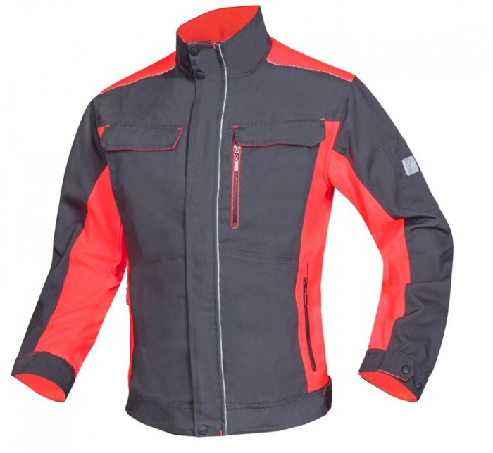 Bluza robocza NEON/ ARDON spełnia normy EN 13688 (odzież ochronna, wymagania ogólne). Doskonale dopasowana bluza robocza, ergonomiczny szczupły fason. Warianty kolorystyczne: czarno-żółty, szaro-czerwony. Rozmiary: czarno-żółty XXS-7XL/ szaro-czerwony XS-5XL/ fason specjalny dla wszystkich grup wzrostowych. Materiał wierzchni: 65% poliester/ 33% bawełna, tkanina canvas/ ok.270 g/m2 oraz 65% poliester/ 35% bawełna, splot diagonalny/ ok. 270 g/m2, tkanina odblaskowa. Wytrzymała tkanina canvas posiada doskonałe właściwości mechaniczne, dużą wytrzymałość na rozciąganie oraz przerwanie. Połączenie ze specjalną tkaniną odblaskową poprawia widoczność w warunkach zagrożenia wypadkiem. Bluza posiada główny zamek kryty plisą na rzep z zatrzaskami, wysoki kołnierz w formie stójki, wielofunkcyjne kieszenie: dwie wewnętrzne kieszenie przelotowe, w części piersiowej dwie duże kieszenie kryte plisą zamykane na rzep, jedna kieszeń piersiowa z metalowym suwakiem, dwie przestrzenne kieszenie na suwak w części dolnej, na lewym rękawie kieszeń na długopisy, odblaskowe wypustki zwiększające widoczność na części przedniej i tylnej, regulowany pas w talii, anatomicznie ukształtowane rękawy i lamówka dolna regulowane za pomącą zatrzasków. Funkcjonalny sportowy fason bluzy, walory kolorystyczne, widoczność oraz odporność gwarantują każdemu użytkownikowi satysfakcję, komfort noszenia, przez co też lepszą wydajność w miejscu pracy. Bluza dedykowana branży budowlano-remontowej, montażowo-instalacyjnej, na produkcję, do warsztatu.