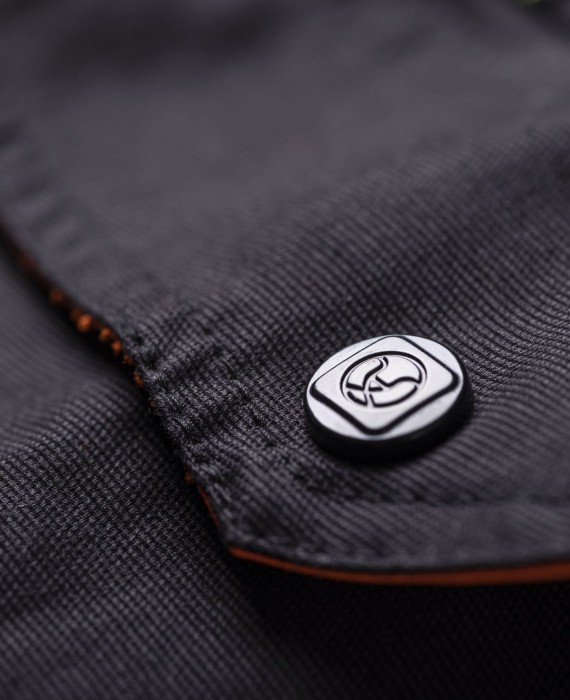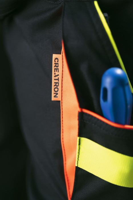 Spodnie posiadają D-ring na karabińczyk, 2 kieszenie otwarte, 1 przednią kieszeń na zamek, 1 przednią kieszeń narzędziową z szeroką pętelką, na prawej nogawce umieszczona jest wielofunkcyjna kieszeń narzędziowa na składaną miarkę, wkrętak i nóż, dodatkowo z szerokimi pętelkami, na lewej nogawce znajduje się duża podwójna kieszeń z patką na zatrzask.