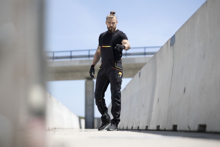 Streczowe bawełniane ogrodniczki robocze ze specjalnego, odznaczającego się zwiększoną wytrzymałością oraz gładką i delikatną powierzchnią materiału Amalytton®.