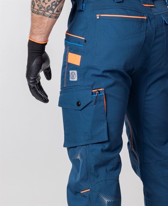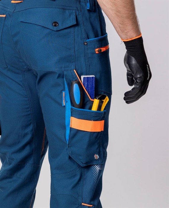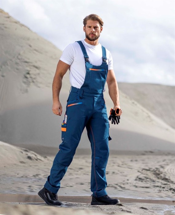 streczowe bawełniane ogrodniczki robocze ze specjalnego, odznaczającego się zwiększoną wytrzymałością oraz gładką i delikatną powierzchnią materiału Amalytton®