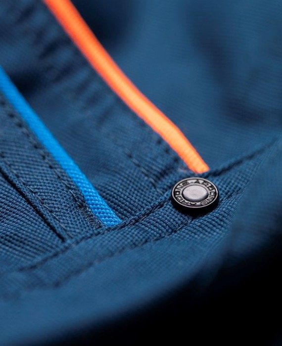 strefa kolan wzmocniona jest wytrzymałym materiałem Oxford z hydrofobowym wykończeniem oraz posiada kieszenie na nakolanniki