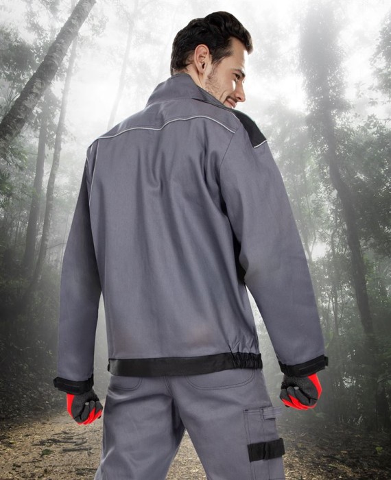 Klasyczna bluza robocza, mocny materiał wysokiej jakości, kryty suwak, regulowana szerokość rękawów, karczek kontrastowy, kieszenie piersiowe na rzep, piersiowa kieszeń na komórkę z suwakiem, dwie dolne kieszenie na suwak, kieszeń na lewym rękawie, z doda...
