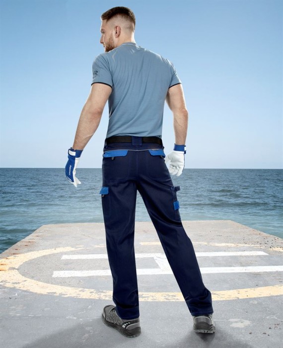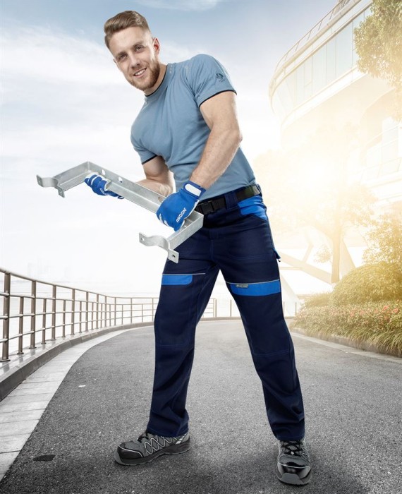 Spodnie do pasa COOL TREND 176-182/ ARDON spełniają normy EN 13688 (odzież ochronna, wymagania ogólne). Klasyczne spodnie do pasa bardzo komfortowe w noszeniu dla wzrostu 176-182 cm. Występują w wariantach kolorystycznych: szaro-pomarańczowy, granatowo-niebieski, niebieski, średnioniebieski, biało-szary, szaro-czarny, brązowy, czarny, czerwony, zielony w rozmiarze od 42 do 66. Wykonane ze 100% bawełny o splocie diagonalnym/ 260g/m2. Tkanina jest wytrzymała mechanicznie a jednocześnie miękka i wygodna w użyciu. Fason COMFORD FIT pozwala na pełną swobodę ruchów. Idealne dopasowanie zapewnia elastyczny pas, szlufki do paska, główne zapięcie na zamek i guzik. Spodnie posiadają wielofunkcyjne kieszenie: karczek i dwie tylne kieszenie kryte patką, dwie pojemne kieszenie przelotowe i boczne kieszenie na narzędzia. Spodnie wyposażono w wypustki odblaskowe, które zwiększają bezpieczeństwo po zmroku i w zacienionych miejscach. Wzmocnione kolana są odporne na przetarcia i uszkodzenia mechaniczne. Bardzo wygodne i jednocześnie wytrzymałe spodnie robocze sprawdzą się przy każdej pracy. Dedykowane dla branży budowlanej, montażowo-instalacyjnej, do prac magazynowych, porządkowych, warsztatowych.