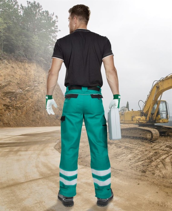 Spodnie do pasa odblaskowe COOL TREND/ ARDON spełniają normy EN 13688 (odzież ochronna, wymagania ogólne). Bardzo komfortowe w noszeniu spodnie robocze w wariantach kolorystycznych: zielono-czarnym, niebiesko-czarnym, czarno-szarym, rozmiary: 46-66. Wykonane ze 100% bawełny o splocie diagonalnym/ 260g/m2. Tkanina jest wytrzymała mechanicznie a jednocześnie miękka i wygodna w użyciu. Fason REGULAR FIT pozwala na pełną swobodę ruchów. Idealne dopasowanie zapewnia elastyczny pas, szlufki do paska, główne zapięcie na zamek i guzik. Spodnie posiadają wielofunkcyjne kieszenie: dwie tylne kieszenie kryte patką, dwie pojemne kieszenie przelotowe i boczne kieszenie na narzędzia. Spodnie wyposażono w dwa pasy odblaskowe i wypustki odblaskowe, które zwiększają bezpieczeństwo po zmroku i w zacienionych miejscach. Wzmocnione kolana są odporne na przetarcia i uszkodzenia mechaniczne. Bardzo wygodne i jednocześnie wytrzymałe spodnie robocze sprawdzą się przy każdej pracy. Dedykowane dla branży budowlanej, montażowo-instalacyjnej, do prac magazynowych, porządkowych, warsztatowych.