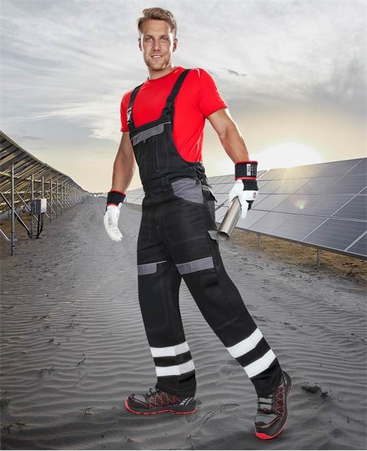 Ogrodniczki odblaskowe COOL TREND/ ARDON spełniają normy EN 13688 (odzież ochronna, wymagania ogólne). Bardzo komfortowe w noszeniu ogrodniczki robocze w wariantach kolorystycznych: zielono-czarnym, niebiesko-czarnym, czarno-szarym, rozmiary: 46-66. Wykonane ze 100% bawełny o splocie diagonalnym/ 260g/m2. Tkanina jest wytrzymała mechanicznie a jednocześnie miękka i wygodna w użyciu. Fason REGULAR FIT pozwala na pełną swobodę ruchów. Idealne dopasowanie zapewnia ściągacz w części tylnej, guziki po bokach i elastyczne szelki regulowane klamrą. Spodnie posiadają wielofunkcyjne kieszenie: dwie tylne kieszenie kryte patką, kieszeń piersiowa kryta patką i kieszeń na zamek, dwie pojemne kieszenie przelotowe i boczne kieszenie na narzędzia. Ogrodniczki wyposażono w dwa pasy odblaskowe i wypustki odblaskowe, które zwiększają bezpieczeństwo po zmroku i w zacienionych miejscach. Wzmocnione kolana są odporne na przetarcia i uszkodzenia mechaniczne. Bardzo wygodne i jednocześnie wytrzymałe ogrodniczki robocze sprawdzą się przy każdej pracy. Dedykowane dla branży budowlanej, montażowo-instalacyjnej, do prac magazynowych, porządkowych, warsztatowych.
