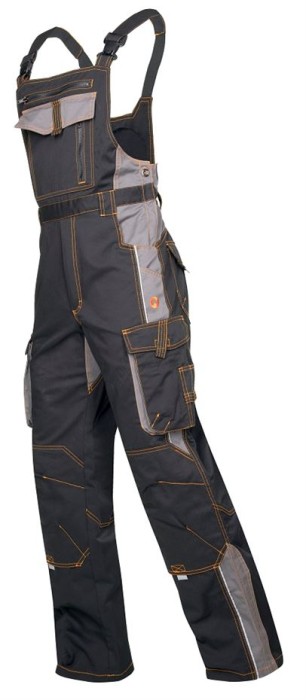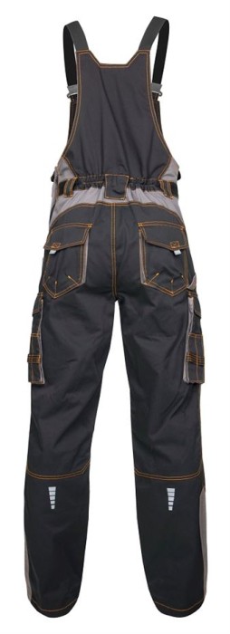 Ogrodniczki z kieszenią na nakolanniki, elastyczne szelki, przelotowa kieszeń na piersiach z plisą na rzep i 2 kieszenie piersiowe na suwak, 2 przednie kieszenie przelotowe, 2 tylne kieszenie kryte plisą, 2 przestrzenne kieszenie na lewej i prawej nogawce...