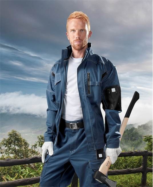Bluza robocza, wysokiej jakości tkanina diagonalna z przeważającym udziałem bawełny naturalnej. Rękawy z elastyczną lamówką i regulowaną szerokością za pomocą zatrzasków, główny suwak kryty plisą na rzep, duża kieszeń piersiowa z plisą na rzep, 1 kieszeń...