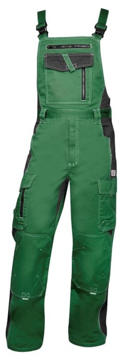 Ogrodniczki z kieszenią na nakolanniki, elastyczne szelki, przelotowa kieszeń na piersiach z plisą na rzep i 2 kieszenie piersiowe na suwak, 2 przednie kieszenie przelotowe, 2 tylne kieszenie kryte plisą, 2 przestrzenne kieszenie na lewej i prawej nogawce...