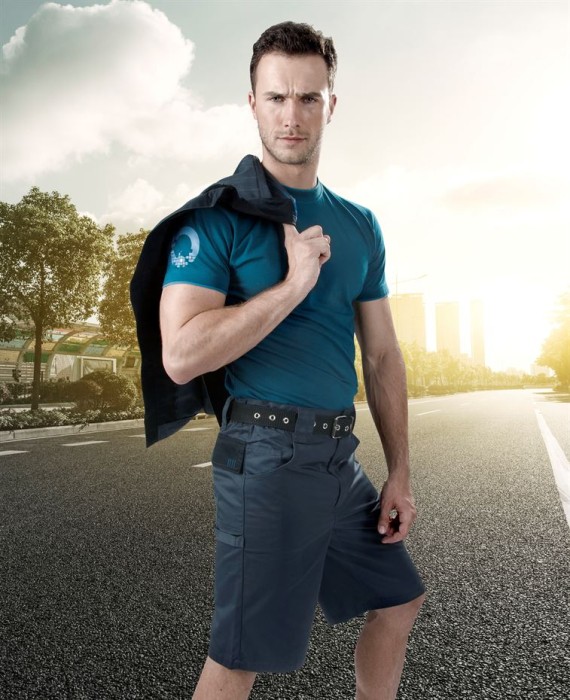 Krótkie spodenki szaro-czarne, 240 g/m2, 35%bawełna, 65%PES, rozmiary 46-64