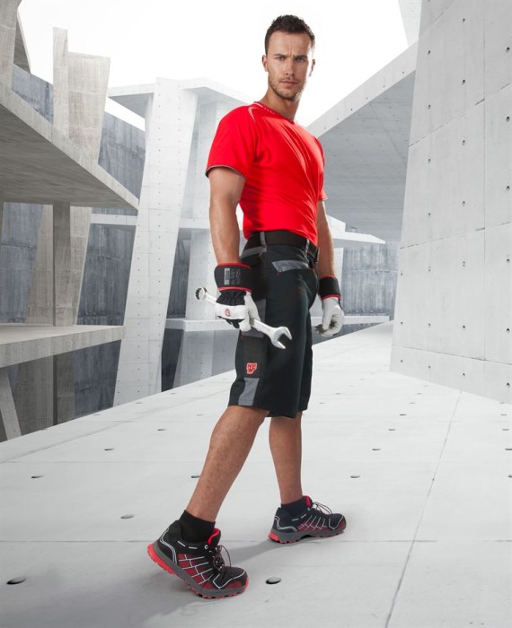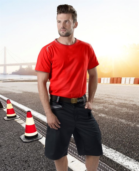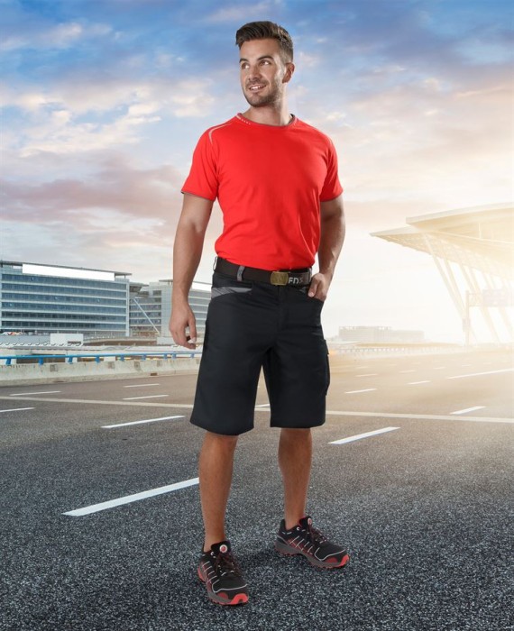 Nadruki odblaskowe w części przedniej i tylnej zwiększające widoczność. Wierzchni materiał: 65 % poliester, 35 % bawełna, splot diagonalny, ok. 245 g/m2. Wzmocnienie: 100 % poliamid CORDURA®. NORMY EN ISO 13688:2013