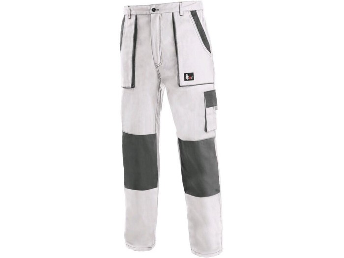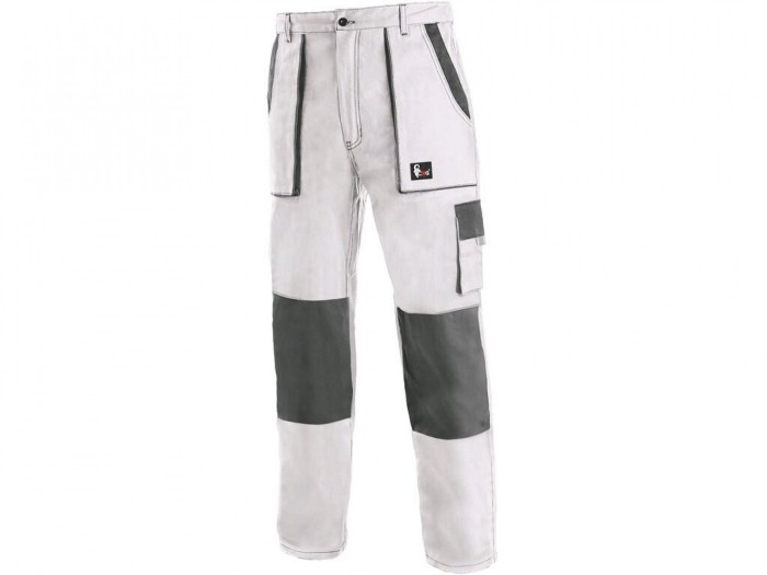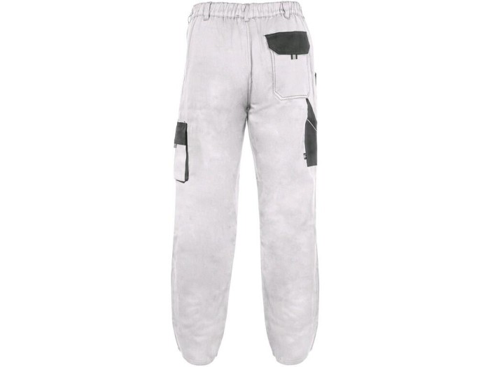 Spodnie robocze męskie, pas ze szlufkami na pasek, z tyłu wszyta guma, przednie kieszenie, kieszeń boczna na zwijany / składany metr, kieszeń boczna na telefon komórkowy / portfel, podwójne kolana, kieszeń tylna z patką.