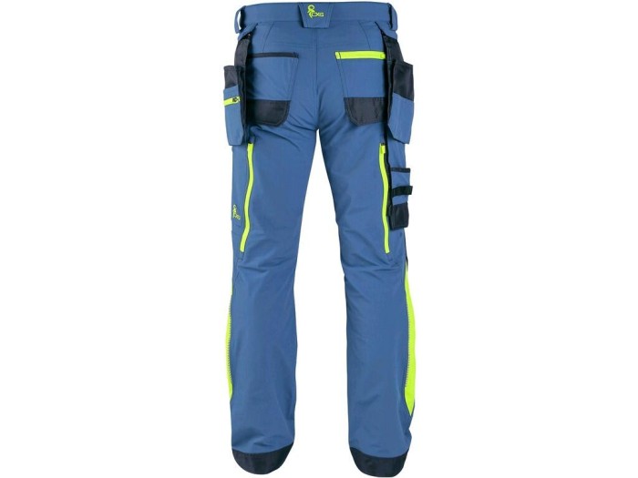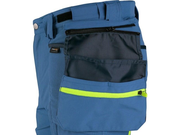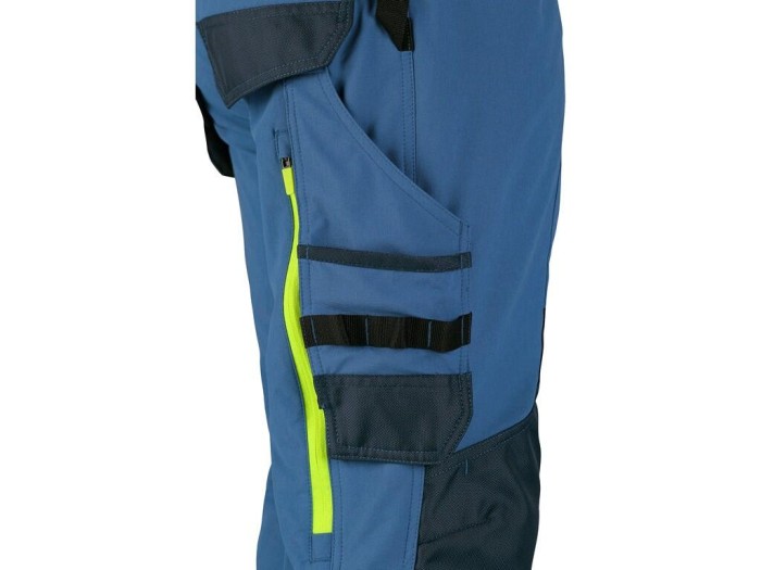 Spodnie do pasa męskie NAOS/ CXS spełniają normy EN 13688 (odzież ochronna, wymagania ogólne). Męskie spodnie robocze o węższym, nowoczesnym kroju z kontrastowymi dodatkami i odblaskowymi elementami. Wykonane z materiału podstawowego: 93% nylon, 7% elastan/ 220g/m2 i materiału uzupełniającego: 100% poliester. Konstrukcja 4-way stretch pozwala materiałowi rozciągać się we wszystkich czterech kierunkach, a tym samym umożliwia łatwy i swobodny ruch. Wysoka zawartość nylonu gwarantuje zdolność do szybkiego schnięcia. Ciekawa kolorystyka: niebieski z żółtymi elementami. Rozmiar: 58-64. Spodnie wyposażono w elastyczny pas z możliwością regulacji rozmiaru i szlufkami na pasek. Wielofunkcyjne kieszenie: przednie kieszenie, odpinane kieszenie na narzędzia, kieszenie tylne i boczne. Wzmocnienia newralgicznych miejsc materiałem CORDURA gwarantuje odporność na przetarcia i uszkodzenia mechaniczne. Wentylacja suwakowa w części ud jest niezastąpiona w gorące dni. Wzmocnione kolana z możliwością wstawienia nakolanników. Zastosowanie: przemysł maszynowy, budownictwo, przemysł lekki, przemysł motoryzacyjny, logistyka, magazyn, spedycja, serwis samochodowy, konserwacja, montaż, rolnictwo, ogród.