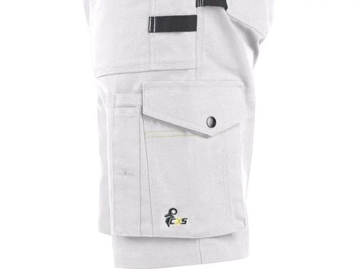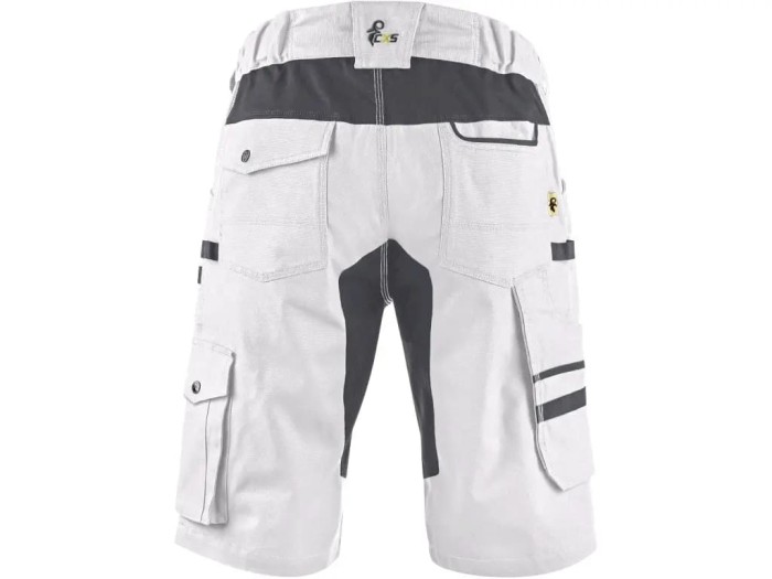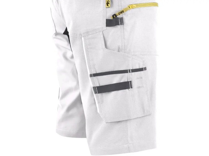 Męskie szorty robocze, tkanina stretch zapewniająca swobodny ruch, szlufki na pasek, przednie kieszenie z kieszonką na zamek, z boku kieszenie wielofunkcyjne, dwie tylne kieszenie - jedna z patką, elementy odblaskowe.
