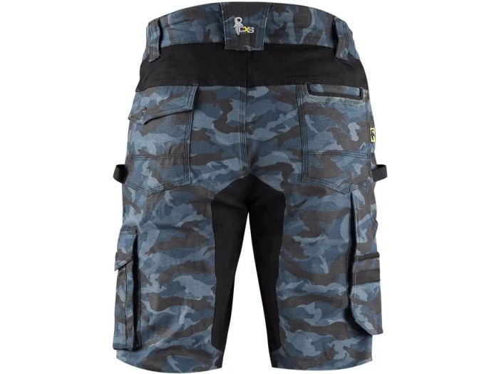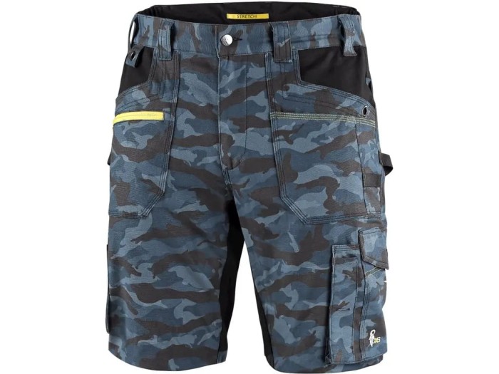 Szorty męskie, tkanina stretch zapewniająca swobodny ruch, pas z szlufki na pasek, specjalne zamykanie w pasie przed spontanicznym oderwaniem, przednia kieszenia z kieszonką na suwak, z boku kieszenie wielofunkcyjne, dwie tylne kieszenie - jedna