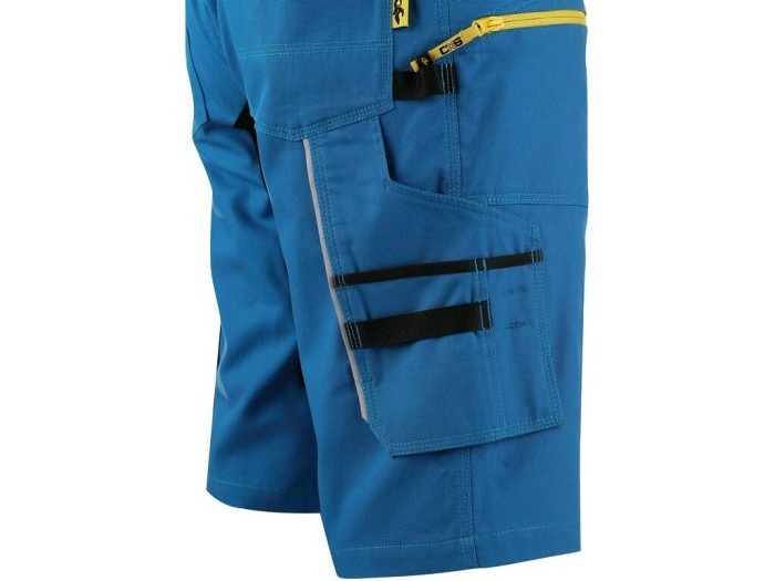 Szorty męskie, tkanina stretch zapewniająca swobodny ruch, pas z szlufki na pasek, specjalne zamykanie w pasie przed spontanicznym oderwaniem, przednia kieszenia z kieszonką na suwak, z boku kieszenie wielofunkcyjne, dwie tylne kieszenie - jedna z klapką.