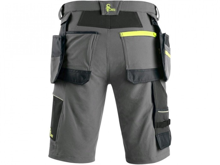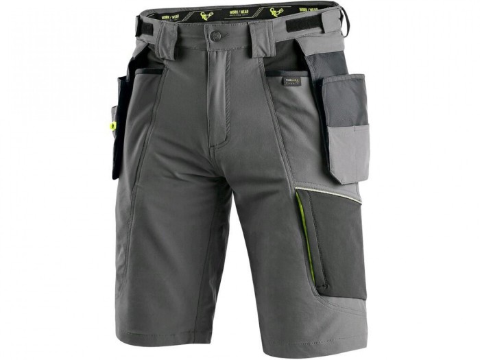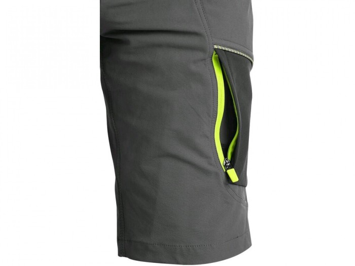 Męskie szorty robocze z kontrastowymi dodatkami i odblaskowymi elementami. 4-way stretch pozwala materiałowi rozciągać się we wszystkich czterech kierunkach, a tym samym umożliwia łatwy i swobodny ruch. Wysoka zawartość nylonu gwarantuje zdolność do szybkiego schnięcia. Szorty zostały wyposażone w: elastyczny pas z możliwością regulacji rozmiaru i szlufkami na pasek, 2 przednie kieszenie, 2 odpinane kieszenie na narzędzia wzmocnione materiałem CORDURA, kieszeń na zamek na udzie, wielofunkcyjną kieszeń boczną, 2 tylne kieszenie na dole wzmocnione materiałem CORDURA. Zalecane zastosowanie: odzież robocza na lato, inżynieria, budownictwo, przemysł lekki, przemysł motoryzacyjny, logistyka, magazyn, spedycja, serwisy samochodowe, konserwacja, montaże, rolnictwo, ogród, hobby i wypoczynek.