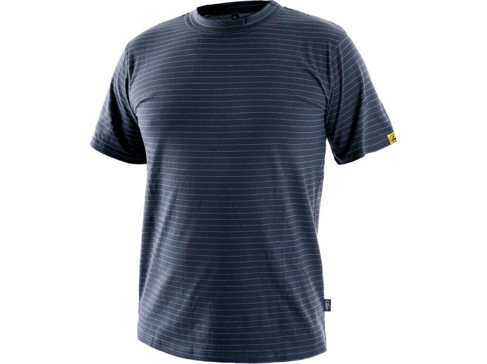 Koszulka z krótkim rękawem ESD CXS NOME/ CANIS, spełnia normy EN 1149-5 ( odzież ochronna, właściwości elektrostatyczne)/EN 61340-5-1 (ochrona przyrządów elektronicznych przed elektrycznością stateczną). Koszulka antystatyczna z krótkim rękawem i okrągłym dekoltem to super dodatek męskiej odzieży roboczej. Występuje w wariantach kolorystycznych: szarym, ciemno niebieskim i średnio niebieskim, tkanina z delikatnymi prążkami w rozmiarach od S do 3XL. Wykonana z wysokiej jakości dzianiny 96% bawełny i 4% włókna węglowego/ 155 g/m2. Koszulka jest delikatna w dotyku, elastyczna, nie gniecie się i ma niższy ładunek elektrostatyczny. Fason z bocznymi szwami z połączeniem podwójnych szwów sprawia, że jest bardzo wytrzymała, idealnie dopasowuje się do figury każdego mężczyzny. Materiał z którego została wykonana koszulka posiada właściwości elektrostatyczne i chroni urządzenia przed elektrycznością stateczną. Wykonana z najwyższą precyzją doskonale sprawdzi się latem, skóra oddycha i nie odczuwa uciążliwych upałów. Koszulka idealnie sprawdzi się w środowisku ESD przy obsłudze maszyn CNC i robotów.