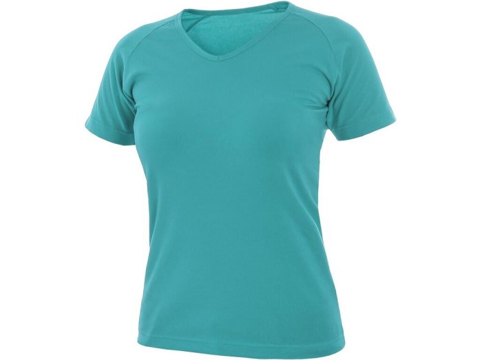 KOSZULKA ELLA DAMSKA V DEKOLT KRÓTKI RĘKAW - TURKUS