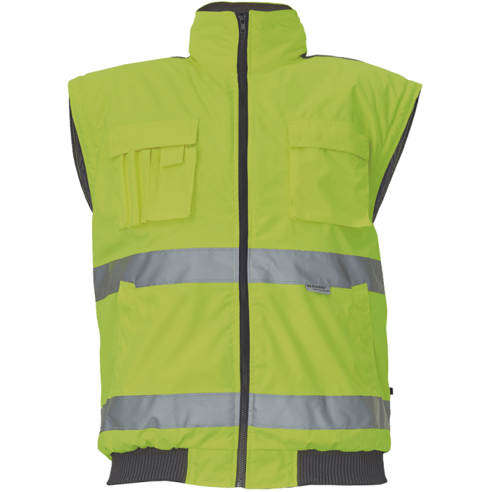 ocieplana kurtka Hi-Vis z taśmami odblaskowymi • odpinane rękawy i kamizelka, która może być noszona oddzielnie • kaptur zintegrowany z kołnierzem • klejone szwy • taśmy odblaskowe 3M • wodoodporność 3 klasy i paroprzepuszczalność 1 klasy zgodnie z normą E i paroprzepuszczalność 1 klasy zgodnie z normą EN 343.