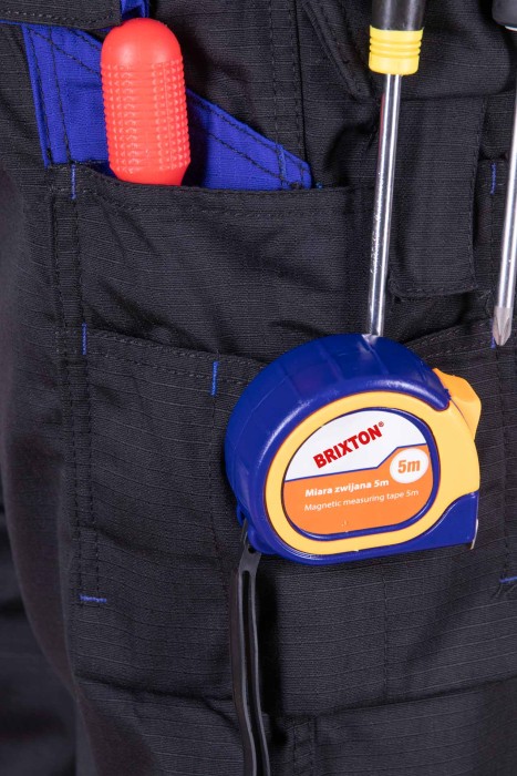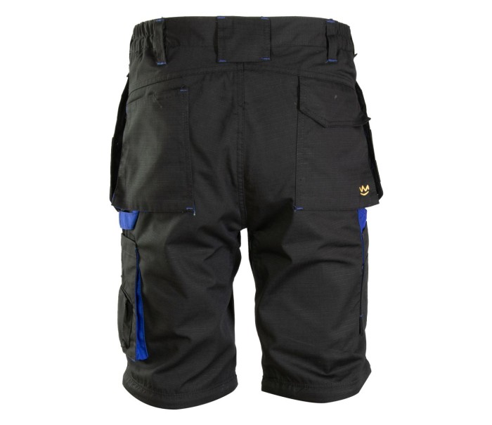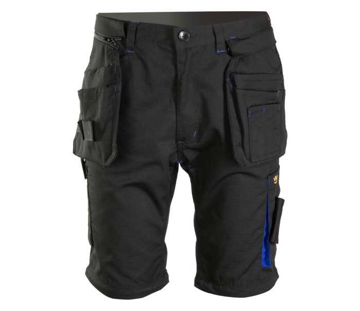 Krótkie spodenki SEVEN KINGS TOPAZ/ POLSTAR spełnia normy EN 13688 (odzież ochronna, wymagania ogólne). Spodenki robocze do pasa bardzo komfortowe w noszeniu. Występują w wariancie kolorystycznym: czarnym z niebieskimi elementami w rozmiarze od 44 do 62. Wykonane z poliester 65%, bawełna 35%/ 260g/m2. Tkanina jest wytrzymała mechanicznie a jednocześnie miękka i wygodna w użyciu nawet po wielokrotnym praniu zachowuje stabilność rozmiaru i koloru. Idealne dopasowanie zapewnia regulowany pas, szlufki do paska, główne zapięcie na zamek i guzik. Spodenki posiadają wielofunkcyjne kieszenie: dwie kieszenie w tylnej części spodni, wzmocnione kieszenie zapinane na rzepy, kieszeń na komórkę, kieszeń na miarkę, dwie kieszenie monterskie dopinane na zamek. Spodenki posiadają szwy ryglówkowe, których głównym celem jest wzmocnienie miejsc narażonych na rozrywanie np: szlufki, kieszenie. Bardzo wygodne i jednocześnie wytrzymałe spodenki robocze sprawdzą się przy każdej pracy. Dedykowane dla branży budowlanej, montażowo-instalacyjnej, do prac magazynowych, porządkowych, warsztatowych.