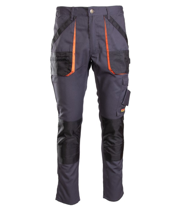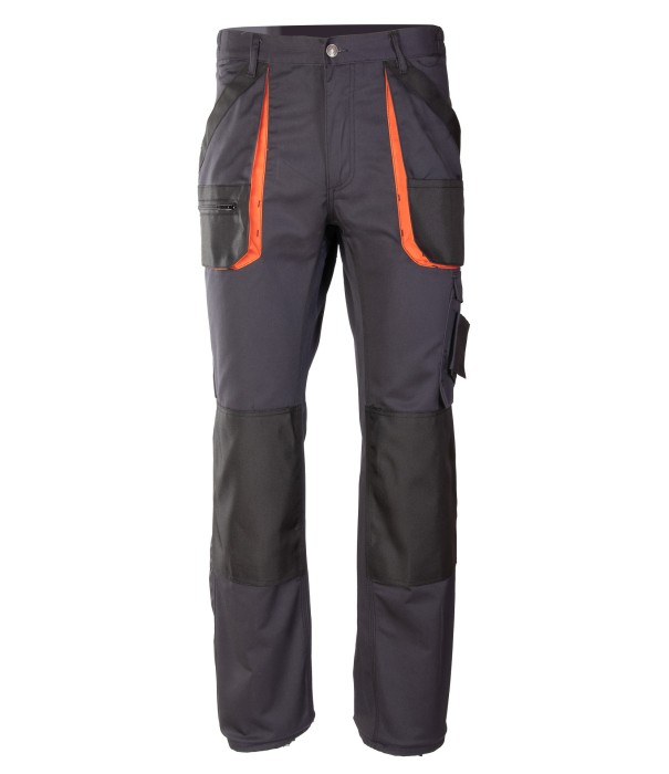 Materiał: wykonany z wysokiej jakości materiału, który nawet po wielokrotnym praniu zapewnia stabilność rozmiarów i kolorów. Budowa/szycie: podwójne i potrójne szwy, szyte mocną nicią, wzmocnienie z tyłu w miejscu narażonym na przetarcie, wstawki kolorystyczne, duża ilość ryglówek w miejscach szczególnie narażonych na rozprucie, spodnie posiadają szlufki na pasek, szlufka na młotek. Kieszenie: kieszeń na miarkę „metrówkę”, wzmocnione kieszenie boczne, kieszeń na komórkę, przestrzenne kieszenie, dwie kieszenie w tylnej części spodni, ergonomiczna kieszeń na nakolanniki wykonana z OXFORDU, kieszeń na zamek; dwie kieszonki na długopisy. Regulacja obwodu: możliwość regulacji w pasie dzięki gumce, Gramatura: 290g/m2; Materiał: Poliester/Bawełna (65% /35%);
