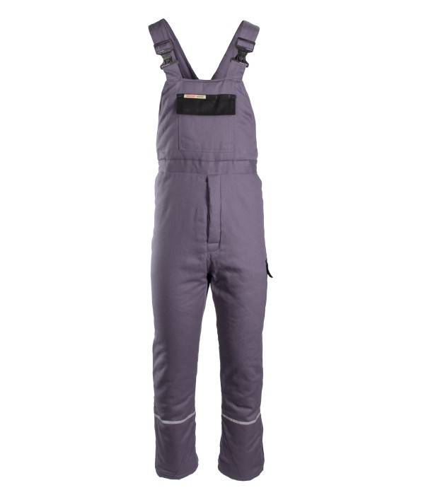 Szelki: długie, szerokie, regulowane szelki. Materiał: wykonana z wysokiej jakości materiału, który nawet po wielokrotnym praniu zapewnia stabilność rozmiarów, 100% bawełna, gramatura 270g/m2. Ocieplina: 100% poliester, 120g/m2. Podszewka: 100% poliester. Budowa/szycie: podwójne szwy, szyte widoczną, mocną nicią. Kieszenie: kieszeń na miarkę „metrówkę”, dwie kieszenie boczne, kieszeń na udzie zapinana na rzep. Regulacja obwodu: za pomocą guzików oraz gumki wszytej w tylnej części spodni. Elementy odblaskowe: na nogawkach i tylnej kieszeni, Gramatura: 270g/m2; Materiał: Bawełna (100%);