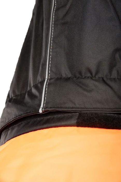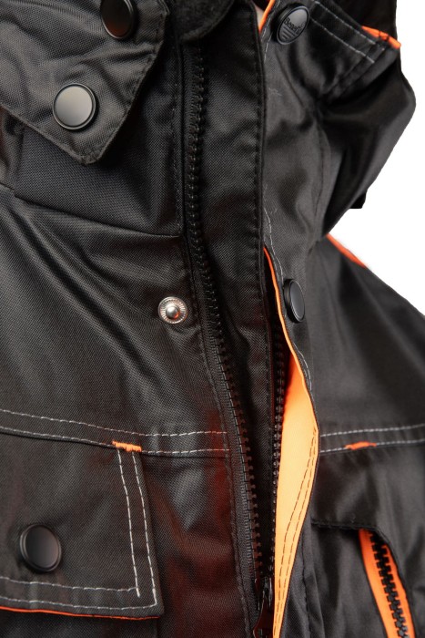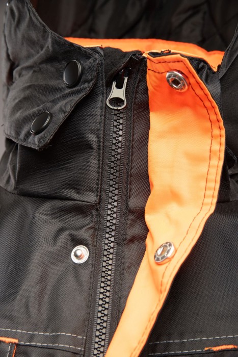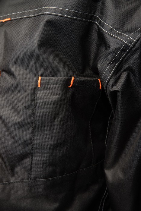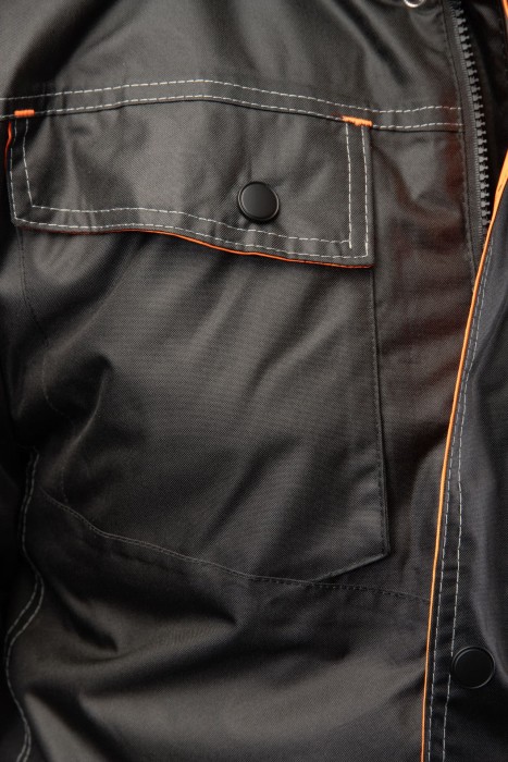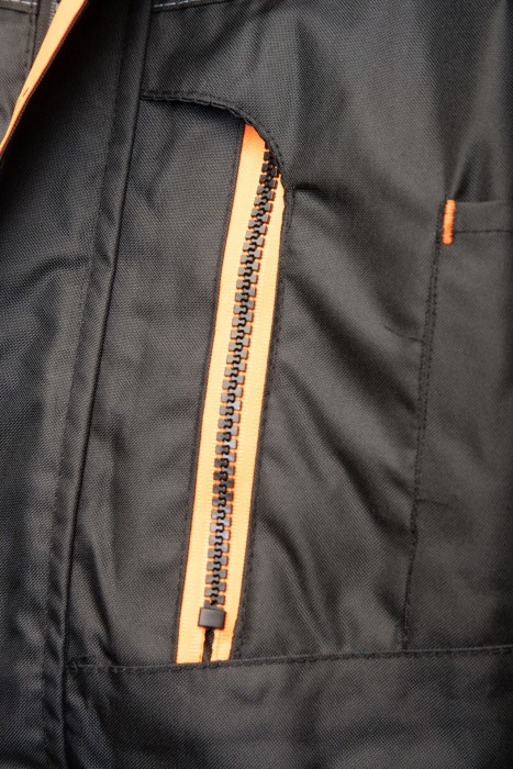Kieszenie: kieszeń na klatce piersiowej zapinana na zamek, kieszenie boczne zapinane na zamek, kryte listwą, kieszeń na klatce piersiowej kryta patką zapinaną na napę
