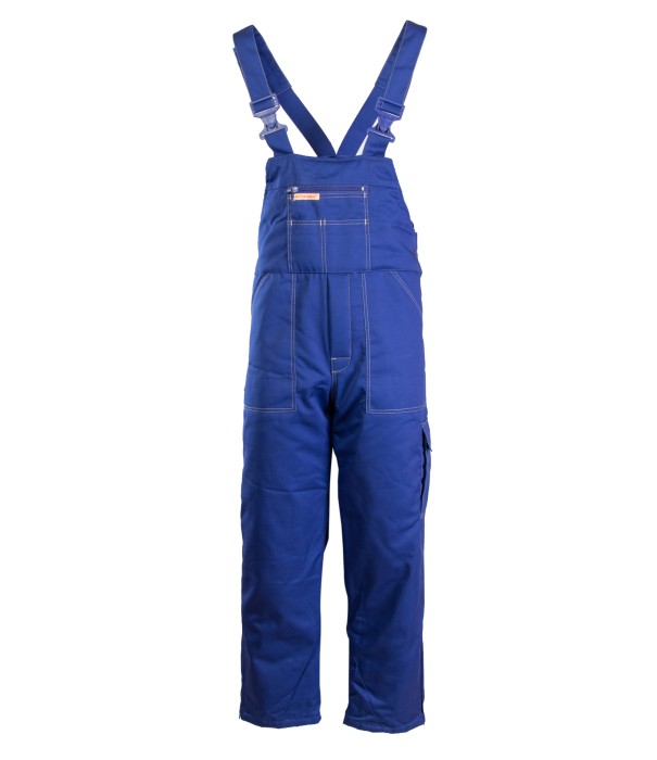 Materiał: Materiał: 65% poliester/ 35% bawełna, gramatura 290 g/m2. Ocieplina: ocieplina 100% poliester, 200g/m2 +/-3%. Podszewka: 100% poliester. Budowa/szycie: podwójne szwy, szyte widoczną, mocną nicią, wykonane z wysokiej jakości materiału, który zapewnia po wielokrotnym praniu stabilność kolorów i rozmiarów, duża ilość ryglówek w miejscach szczególnie narażonych na rozprucie, długie, szerokie, regulowane szelki, wzmocnienie materiału po wewnętrznej stronie nogawki, u dołu. Kieszenie: kieszeń na dokumenty zapinana na zamek, kieszeń na miarkę „metrówkę”, wzmocnione kieszenie boczne, dwie kieszenie boczne, kieszeń na długopisy. Regulacja obwodu: możliwość regulacji w pasie za pomocą guzików oraz gumki wszytej w tylnej części spodni, regulowana szerokość nogawki, Gramatura: 290g/m2; Materiał: Poliester/Bawełna (65% /35%);
