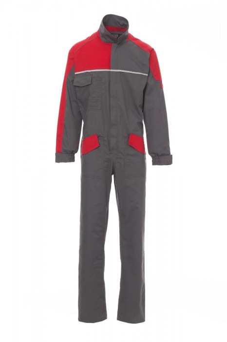 KOMBINEZON ROBOCZY MĘSKI PROMOTECH - SZARY STALOWY/CZERWONY
