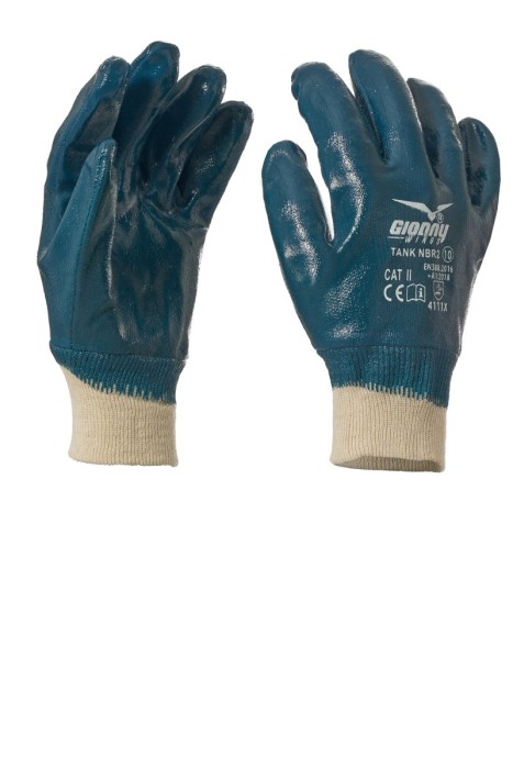 Rękawice DURA+ NBR, z pełną podszewką, mankiet z dzianiny, powłoka – dzianina bawełniana - Charakterystyka: bardzo wytrzymałe, trwałe - Mocne strony: odporne na działanie cieczy, przyczepne, ochrona, praktyczne, doopsowane - Obszar stosowania: praca w trudnych warunkach, praca z metalami, materiałami ostrymi i szorstkimi, z olejem, smarem, zabrudzeniami, węglowodorami, produktami smarnymi. Minimalna jednostka sprzedaży: 1 tuzin (12 sztuk)
