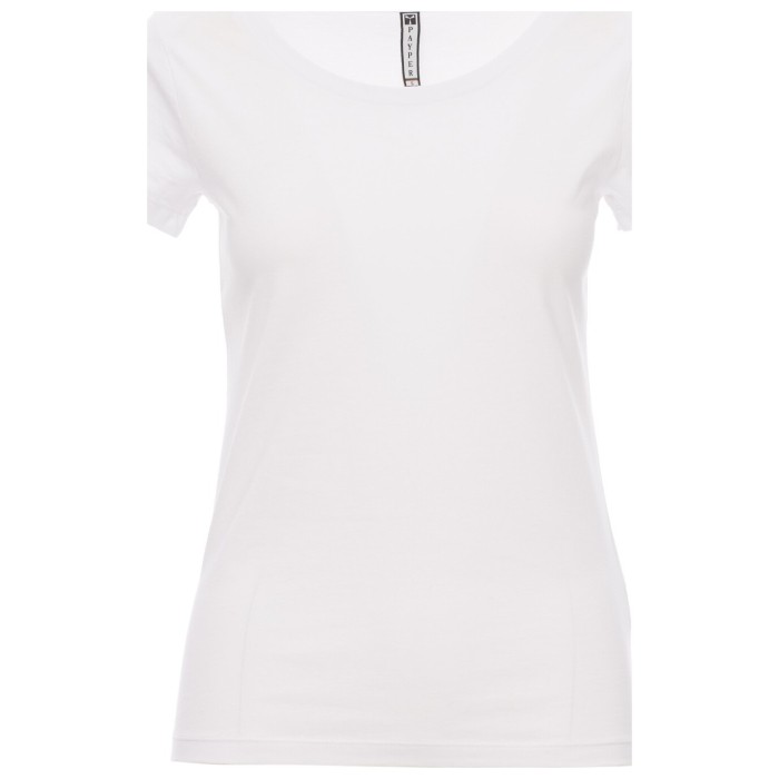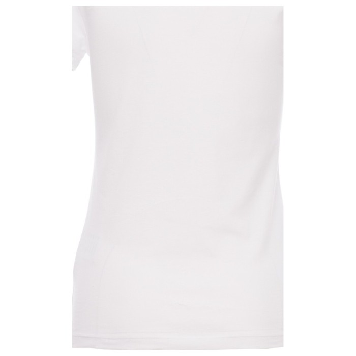 Dopasowany t-shirt damski z krótkim rękawem i z okrągłym, szerokim dekoltem, z 1,2 cm brzegiem z mieszanki spandeksu, krótkie i wąskie rękawy z bocznym szwem zapewniającym bardziej precyzyjne dopasowanie, dwuigłowe szwy na ramionach i na tylnej części kołnierzyka oraz bawełniana taśma.