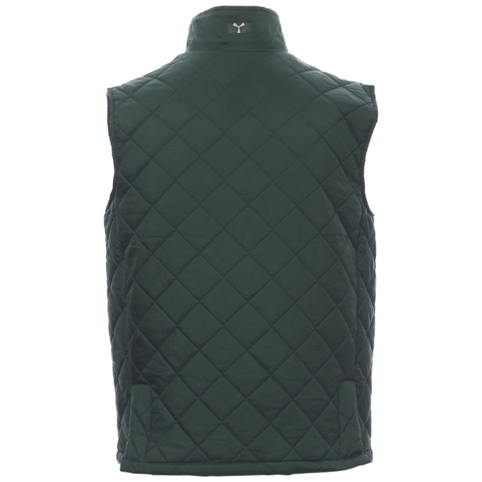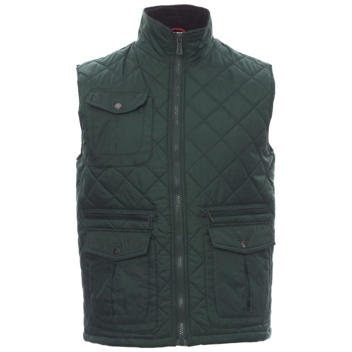 Kamizelka męska pikowana, zamek błyskawiczny plastikowy 8 mm z metalowym suwakiem, rozcięcia boczne z guzikiem, pięć zewnętrznych kieszeni, z których dwie z zapięciem LOCK SYSTEM.
