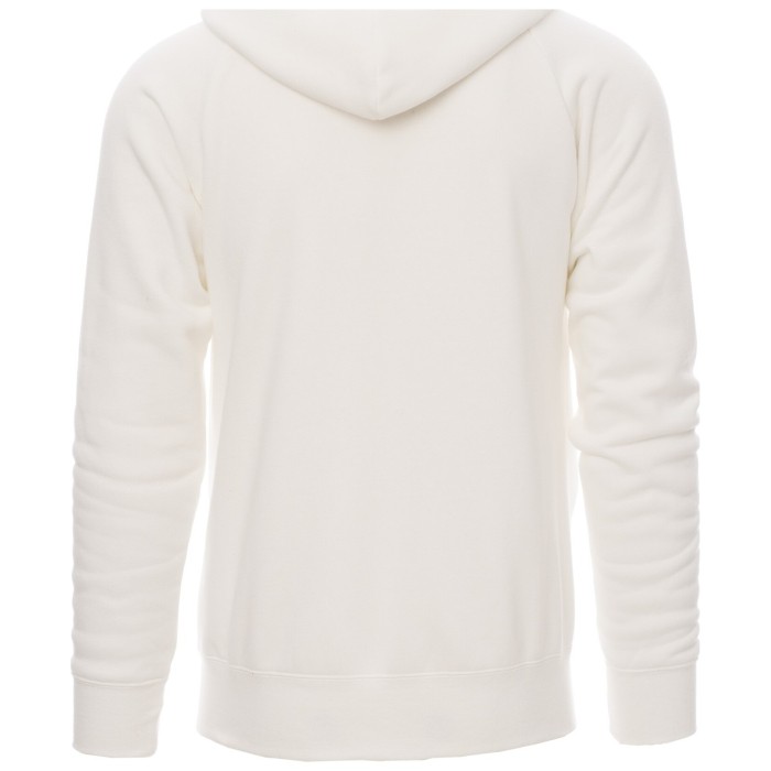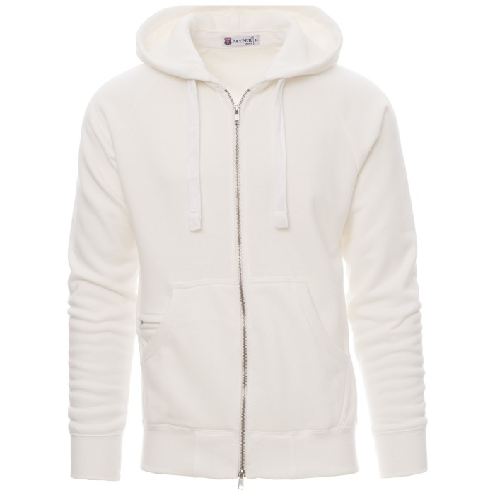 Bluza męska z kapturem, rozpinana, zamek błyskawiczny metalowy z podwójnym suwakiem metalowym, rękawy raglanowe, kaptur z białym sznurkiem, kontrastowymi przeszyciami i kółkami metalowymi, kieszenie-kangurki, mała kieszonka na zamek błyskawiczny z otworem na smycz do mp3-telefonu komórkowego, mankiety i dół ze ściągaczem, wzmocnione szwy.