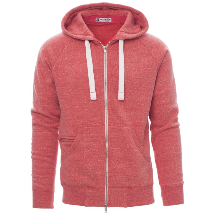 BLUZA NA ZAMEK Z KAPTUREM URBAN - CZERWONY MELANŻ