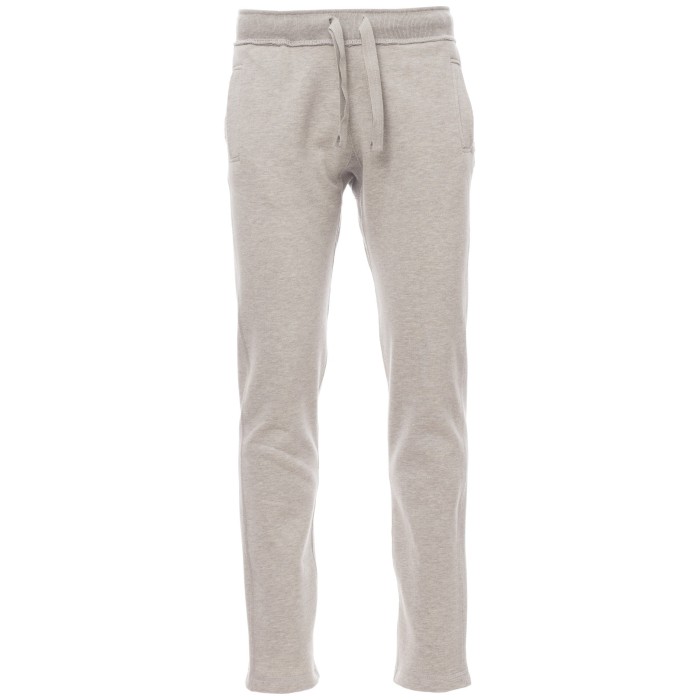 Spodnie dresowe męskie, elastyczna talia z troczkiem i sznurkiem w kolorze materiału, rozporek na zamek błyskawiczny z patką, ściągacz w kroku, dwie przednie kieszenie, jedna mała kieszonka z tyłu.