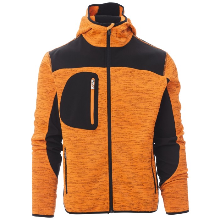 KURTKA SOFTSHELL Z KAPTUREM TRIP - POMARAŃCZOWY FLUO-CZARNY
