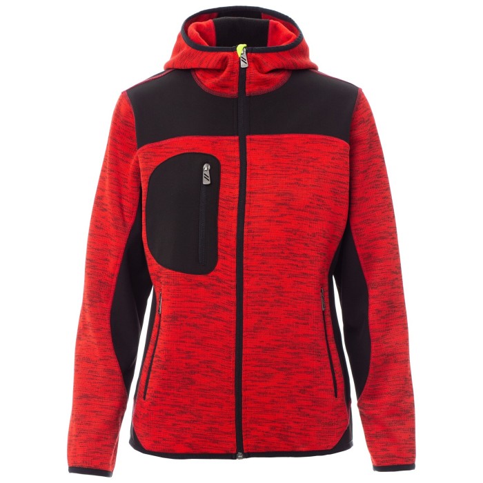 KURTKA SOFTSHELL Z KAPTUREM TRIP LADY - CZERWONY-CZARNO-ŻÓŁTY FLUO