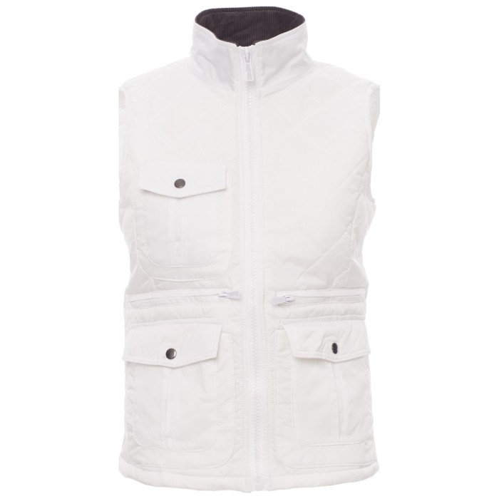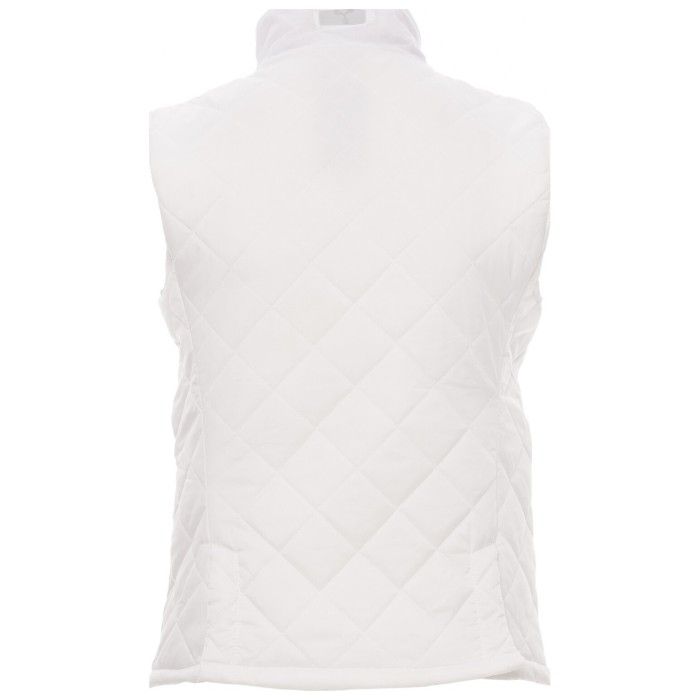 Kamizelka damska pikowana o ergonomicznym kroju, zamek błyskawiczny plastikowy 8 mm z metalowym suwakiem, rozcięcia boczne z guzikiem, pięć zewnętrznych kieszeni, z których dwie z zapięciem LOCK SYSTEM.