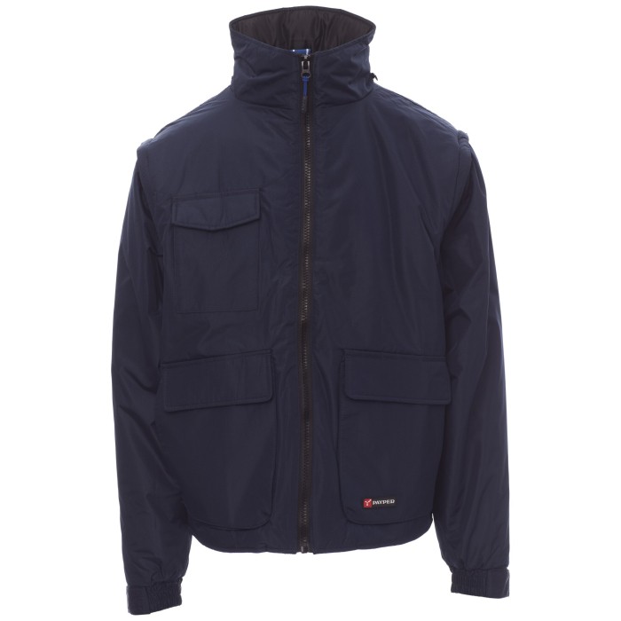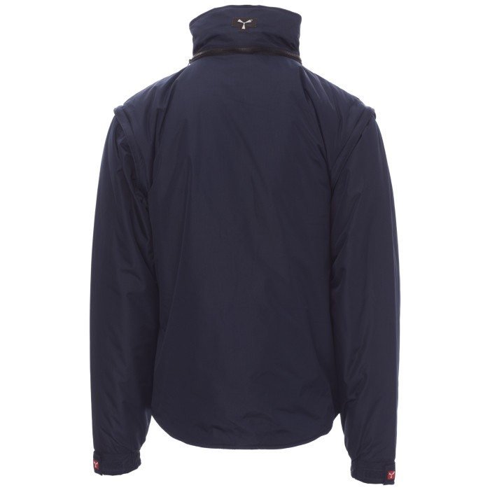 Kurtka męska, odpinane rękawy, plastikowy zamek błyskawiczny 8 mm z metalowym suwakiem, kaptur chowany w kołnierzu, elastyczne mankiety ze ściągaczami, dwie pojemne kieszenie z przodu z zapięciem LOCK SYSTEM, dwie kieszenie boczne, kieszonka na smartfon na klatce piersiowej.