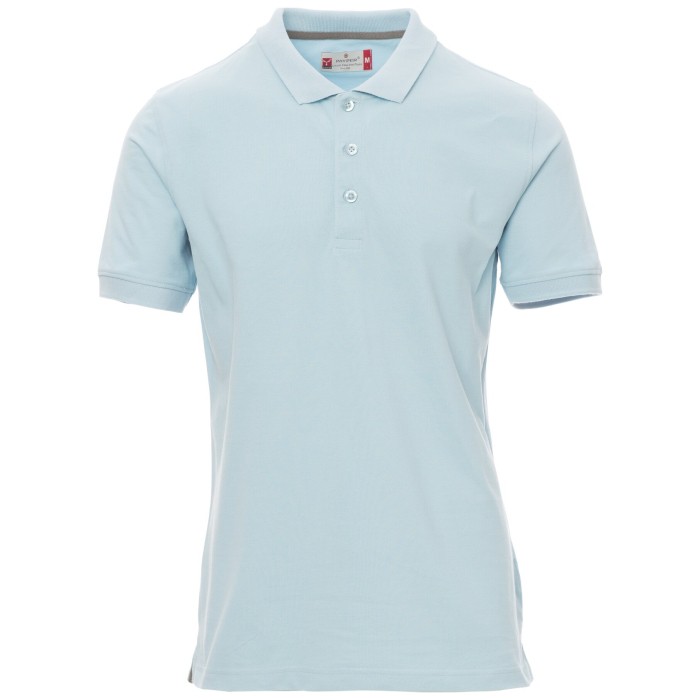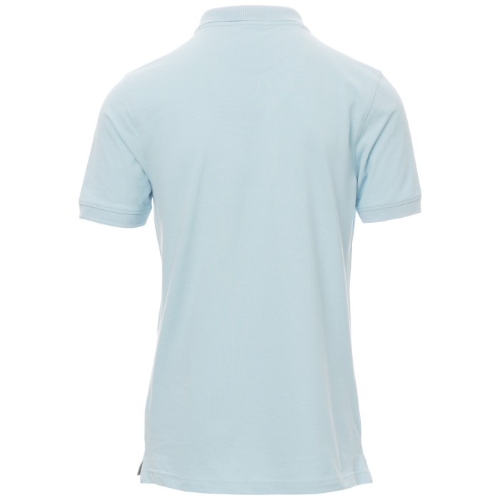 Koszulka polo męska, z krótkim rękawem, z 3 pasującymi guzikami z efektem masy perłowej, kołnierzyk i krawędzie rękawów ze ściągaczem, rozcięcia boczne, zasłonięte szwy kołnierzyka z kontrastową taśmą, szwy elastyczne, boczna taśma wzmacniająca.
